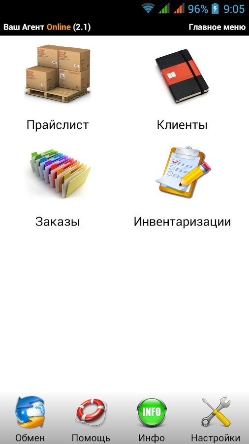 После загрузки приложения Вы сразу попадаете в демонстрационный режим. Сделайте обмен и на устройство будет загружена база с демонстрационными товарами и клиентами. Вы сможете оценить удобство и легкость работы с приложением сразу после установки.