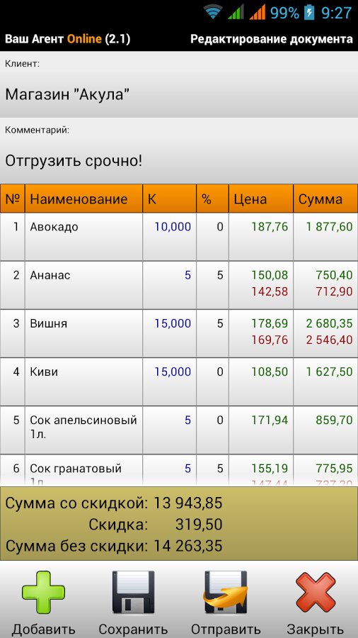 - После оформления нажатием одной кнопки агент отправляет новый заказ в офис
