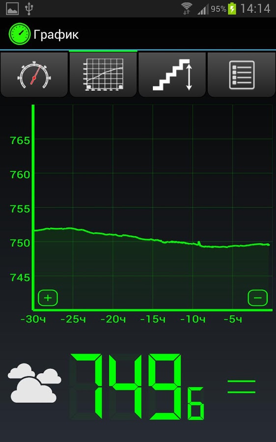 Внимание! Программа работает только на коммуникаторах, оснащенных датчиком атмосферного давления.