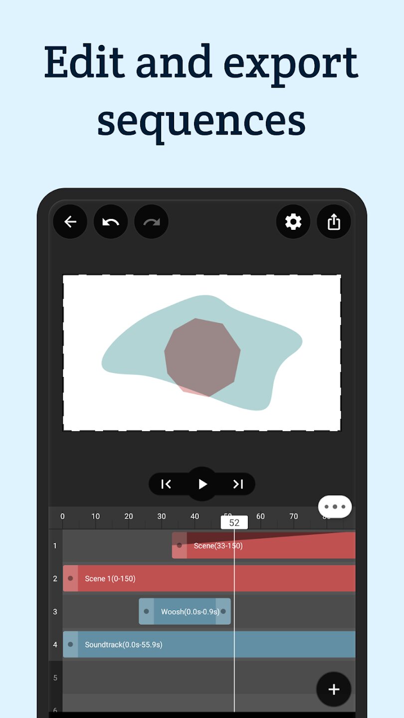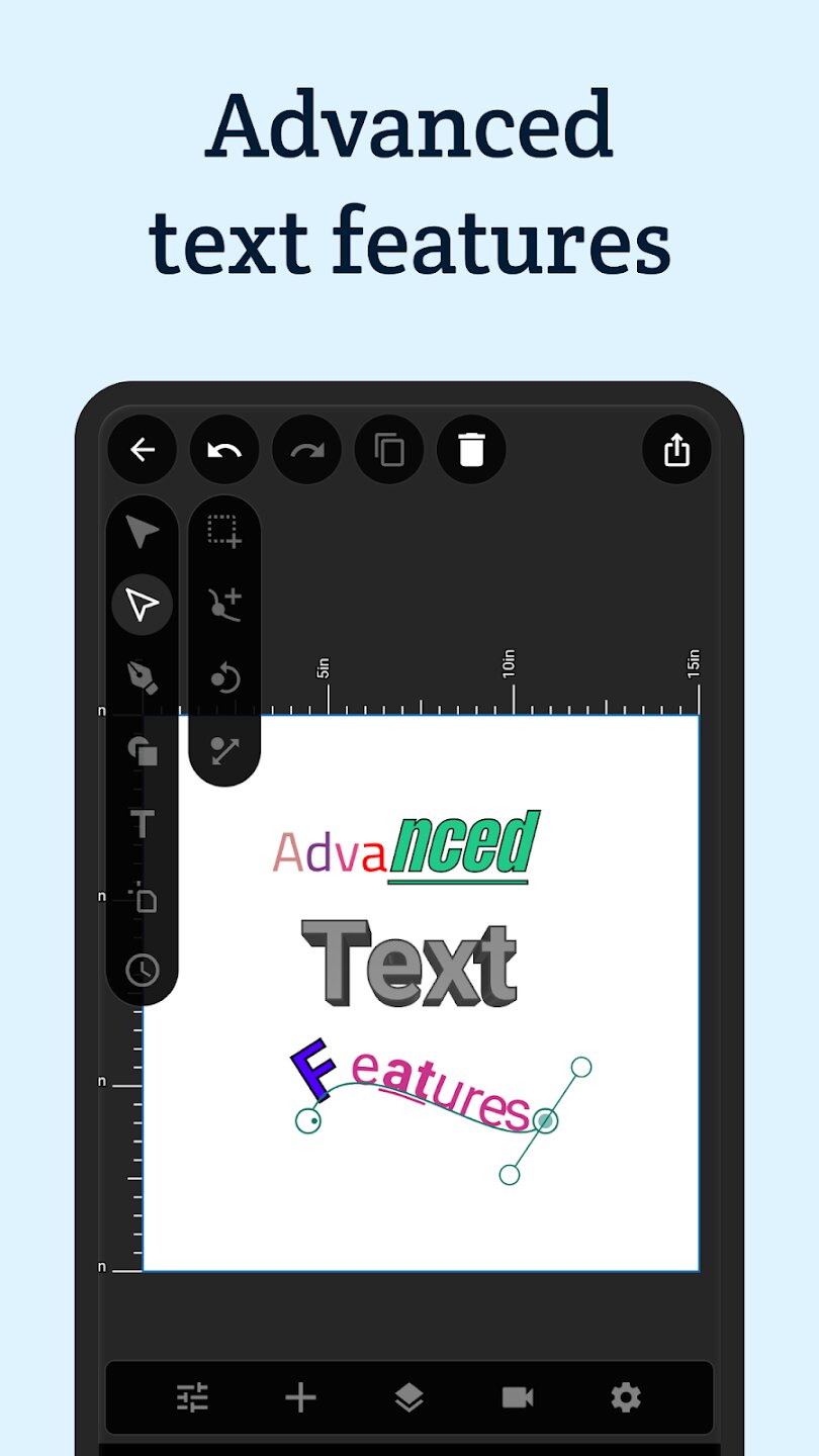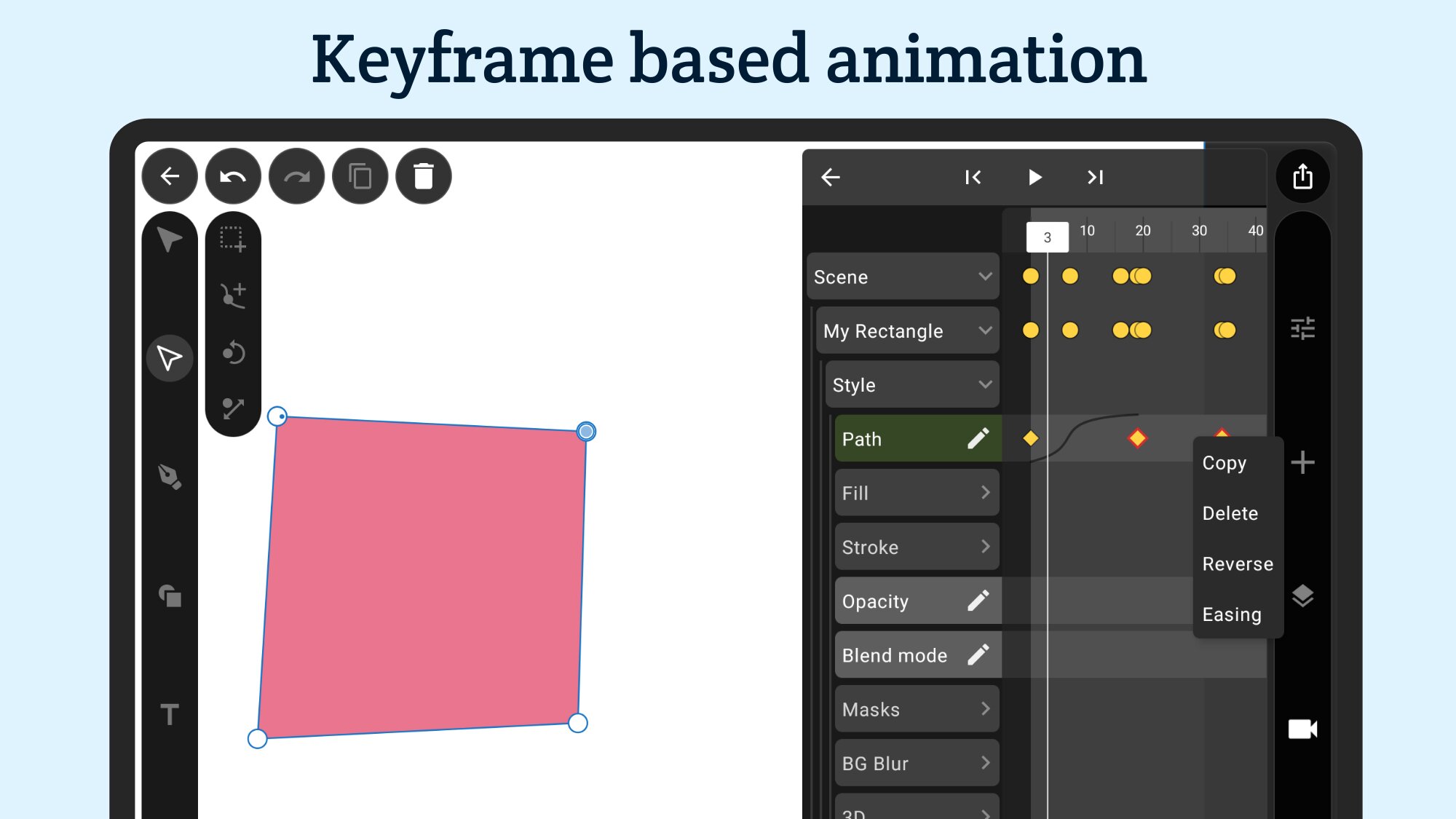 Приложение предлагает расширенную временную шкалу для точного управления анимацией, позволяя копировать, переворачивать и настраивать плавность ключевых кадров на всех слоях одновременно. Улучшайте свою работу с помощью широкого спектра профессиональных функций, включая эффекты слоев, такие как размытие и свечение, деформация марионеток для анимации персонажей, маскирование контуров, морфинг фигур и расширенные средства управления типографикой с поддержкой внешних шрифтов и текста на контуре.