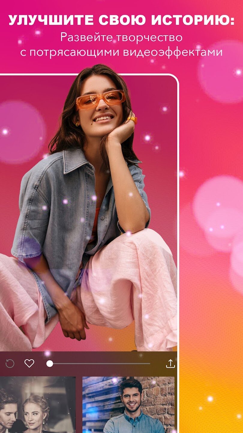 Приложение отличается скоростью и простотой использования. Вы можете анимировать фотографии, применять динамические эффекты, такие как глюк, неон или боке, а также добавлять музыку из встроенной библиотеки или своей личной коллекции. Его компактный размер не ухудшает функциональность, предлагая инструменты для создания контента для любых целей — от продвижения бренда и праздничных поздравлений до видеоблогов о путешествиях и мотивационных цитат. Оптимизированный процесс позволяет сохранять и делиться своими отполированными творениями прямо в социальных сетях сразу после редактирования.