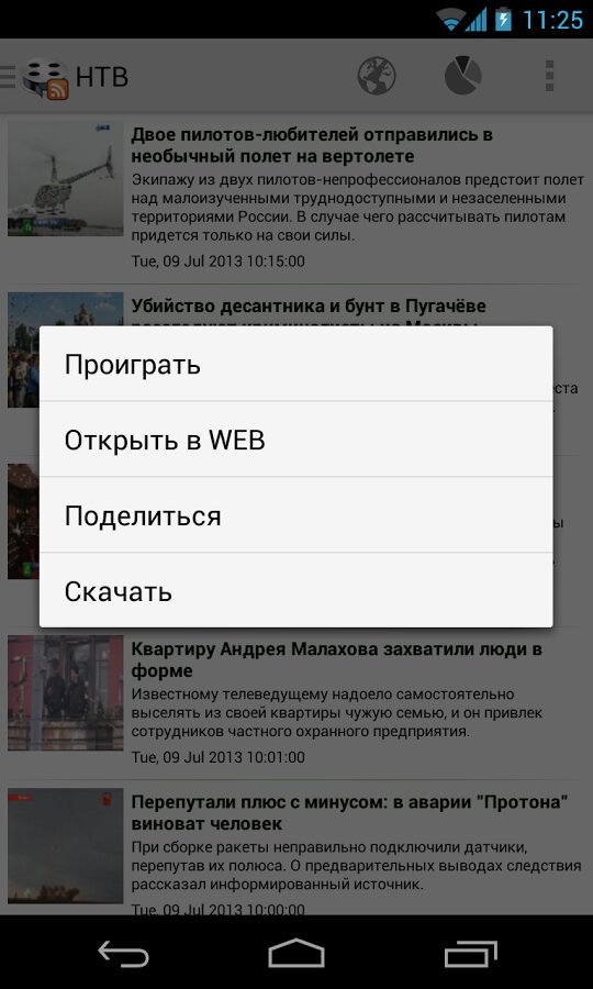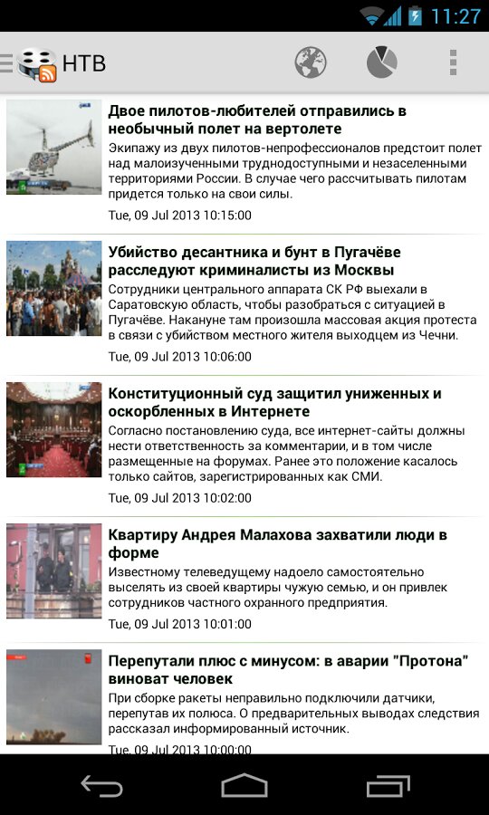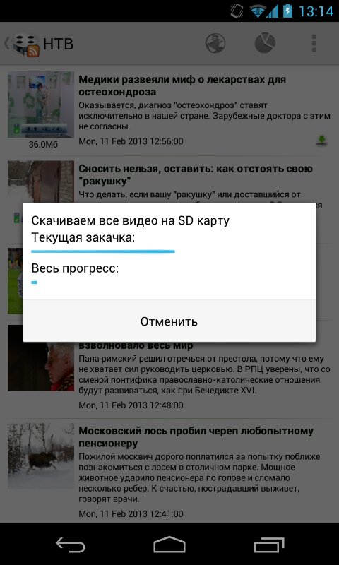 VideoRSS — с помощью этого приложения для Android вы сможете на своем смартфоне просматривать ленту новостей с официальных сайтов крупнейших российских телекомпаний.