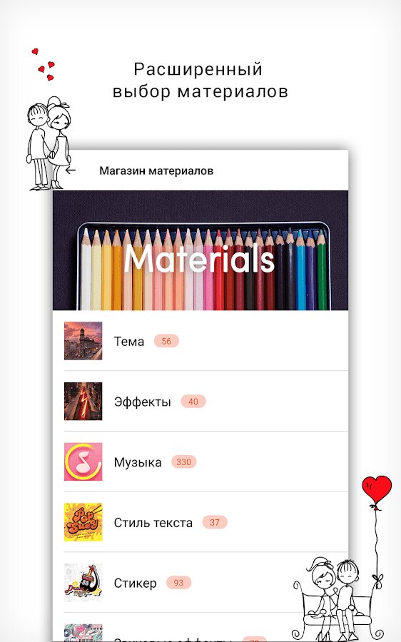 - Более 50 интересных тем для быстрого создания видео.