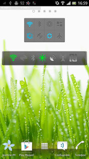 Виджет включения/выключения 3G/EDGE интернета, Bluetooth, Wi-Fi, GPS, NFC и изменения режима яркости.