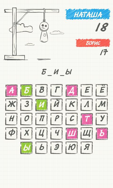 Старая добрая игра «Виселица».Правила просты, цель: угадать задуманное слово из разной категории, можно играть вдвоём на одном телефоне