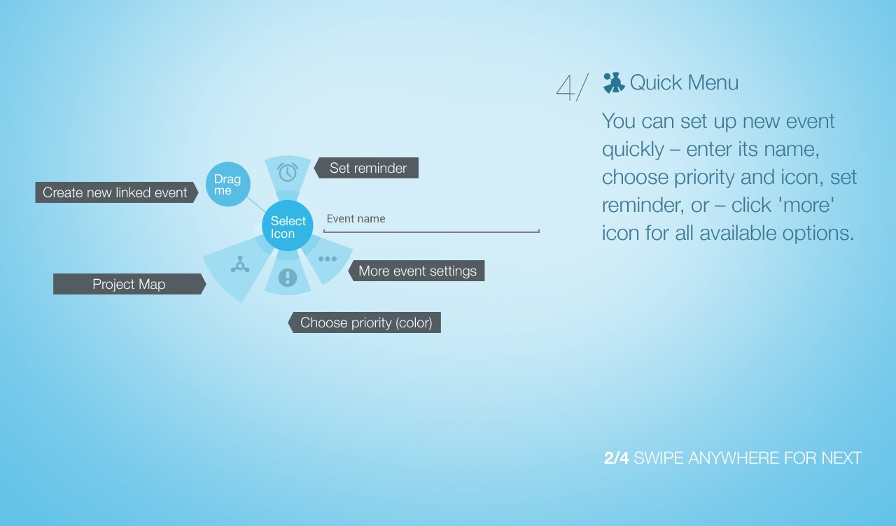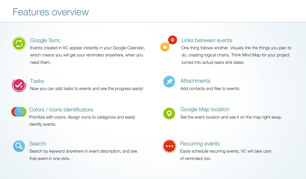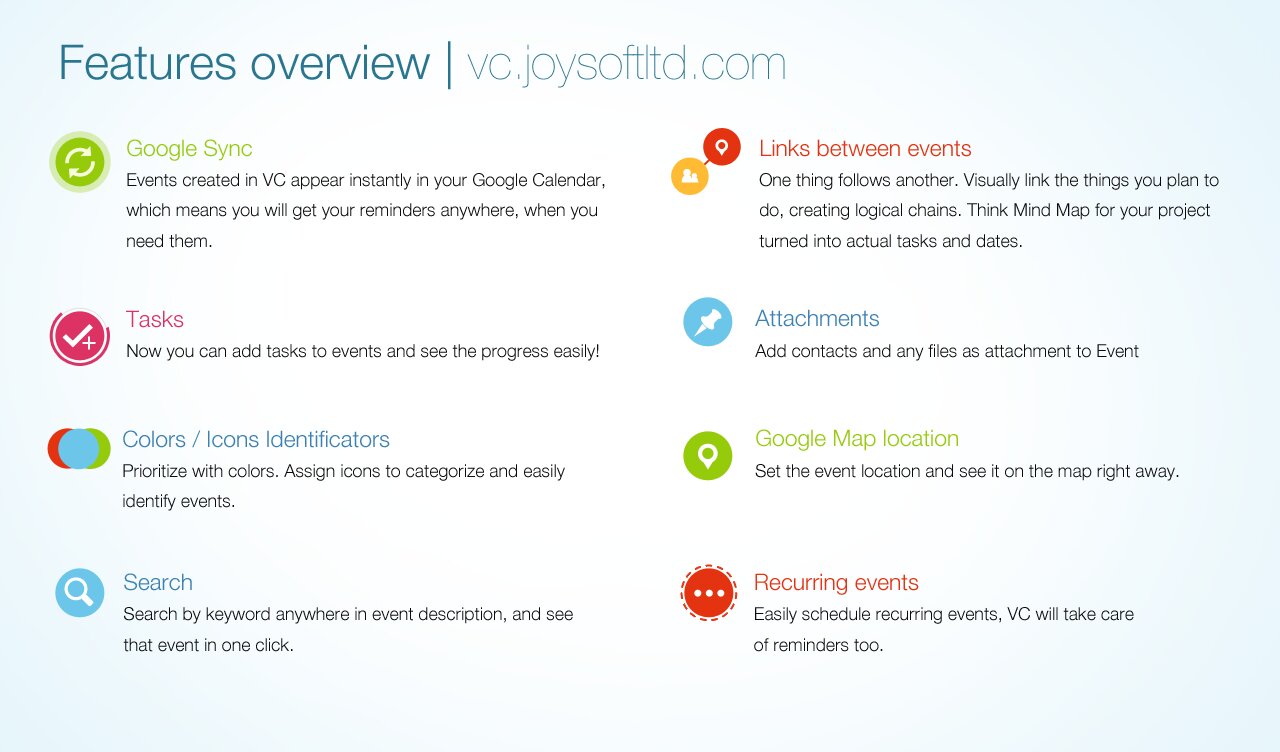 Visual Calendar — это приложение, меняющее представление о планированнии дел. Оно совмещет в себе функции стандартного планировщика и идеологию Mind Map.