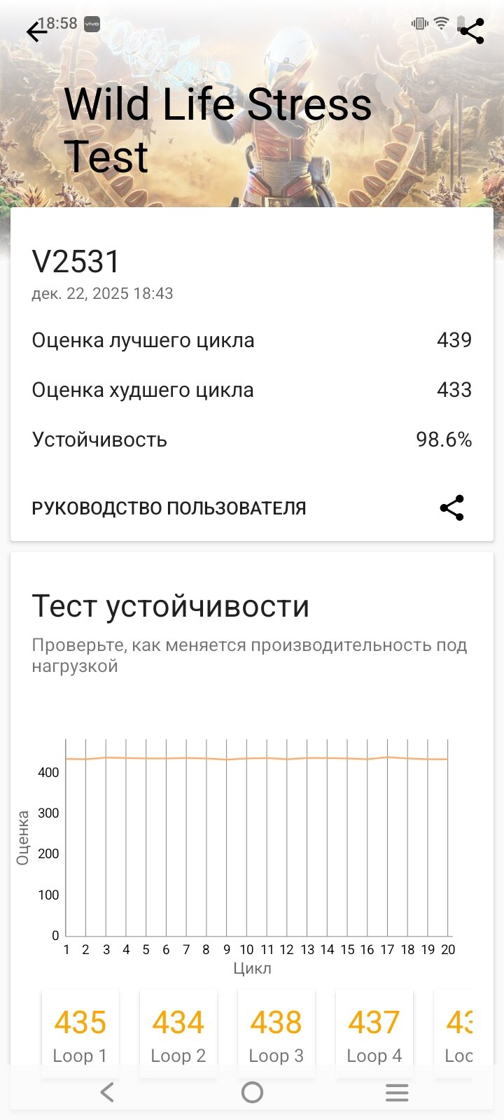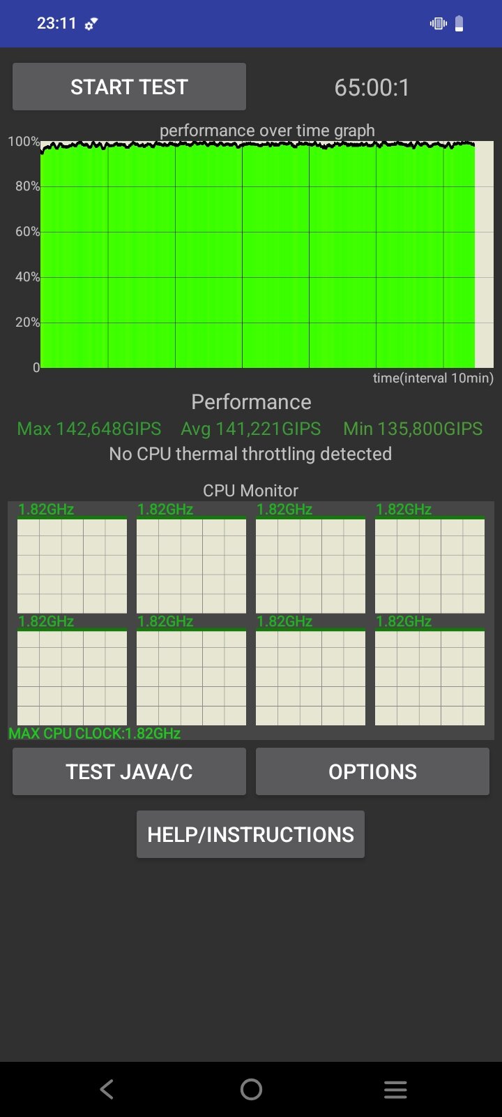 Примечательно, что у смартфона нет никаких проблем с пассивным рассеиванием тепла — процессор Unisoc T7225, даже работая при полной загрузке производительных ядер, демонстрирует минимальное снижение тактовой частоты без какого-то заметного троттлинга системы. Чип способен выдавать стабильную производительность при длительных игровых сессиях, корпус смартфона при этом ощущается едва тёплым.