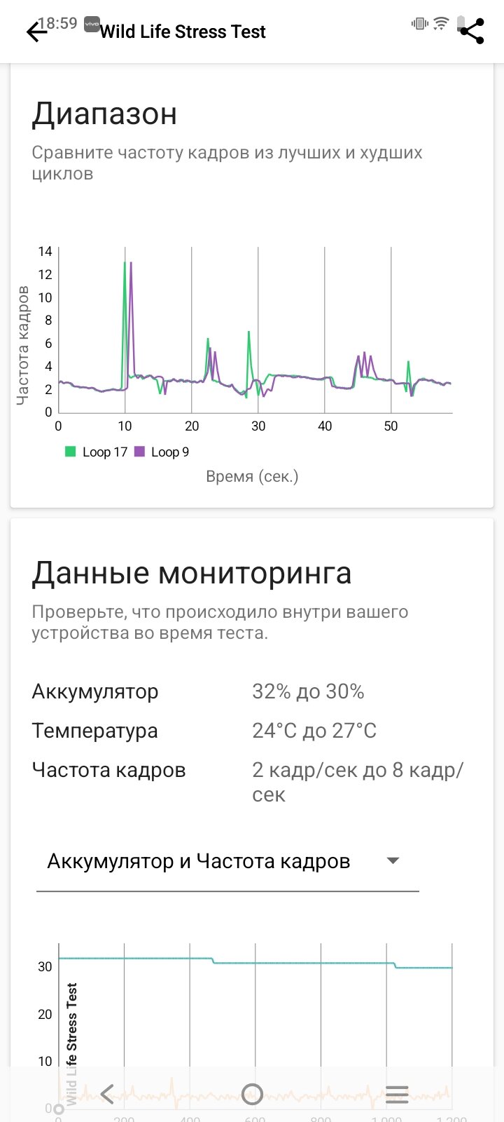 В стресс-тестах Mali-G57 MP1 показывает себя очень уверенно, без просадок и снижения производительности.