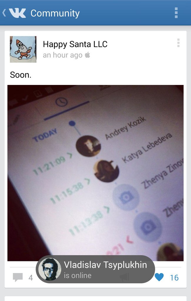 VK Spy показывает, когда и с какого устройства пользователь заходил и выходил из сети. Вы получите удобное уведомление, если кто-то набирал вам сообщение, но не отправил его. Теперь не нужно раз за разом обновлять страницу, ожидая друга онлайн — приложение оповестит вас самостоятельно.