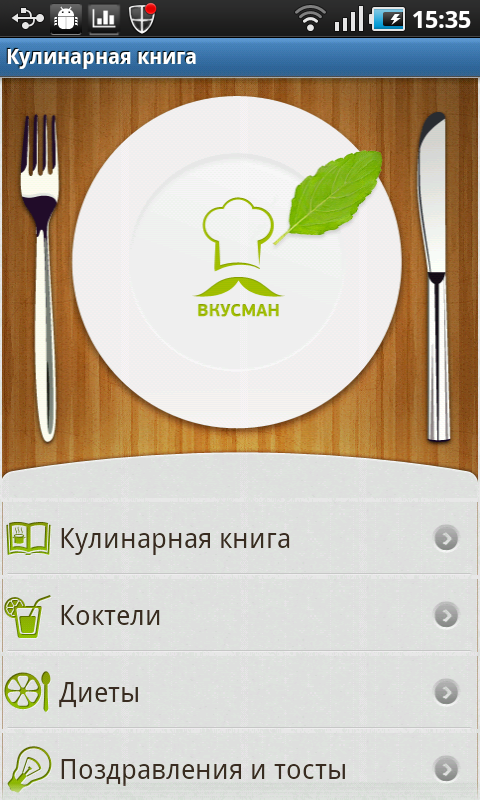 Кроме кулинарной книги Vkusman предлагает Вам коктейльную карту, рекомендации по диетам, а также сборник поздравлений и тостов.