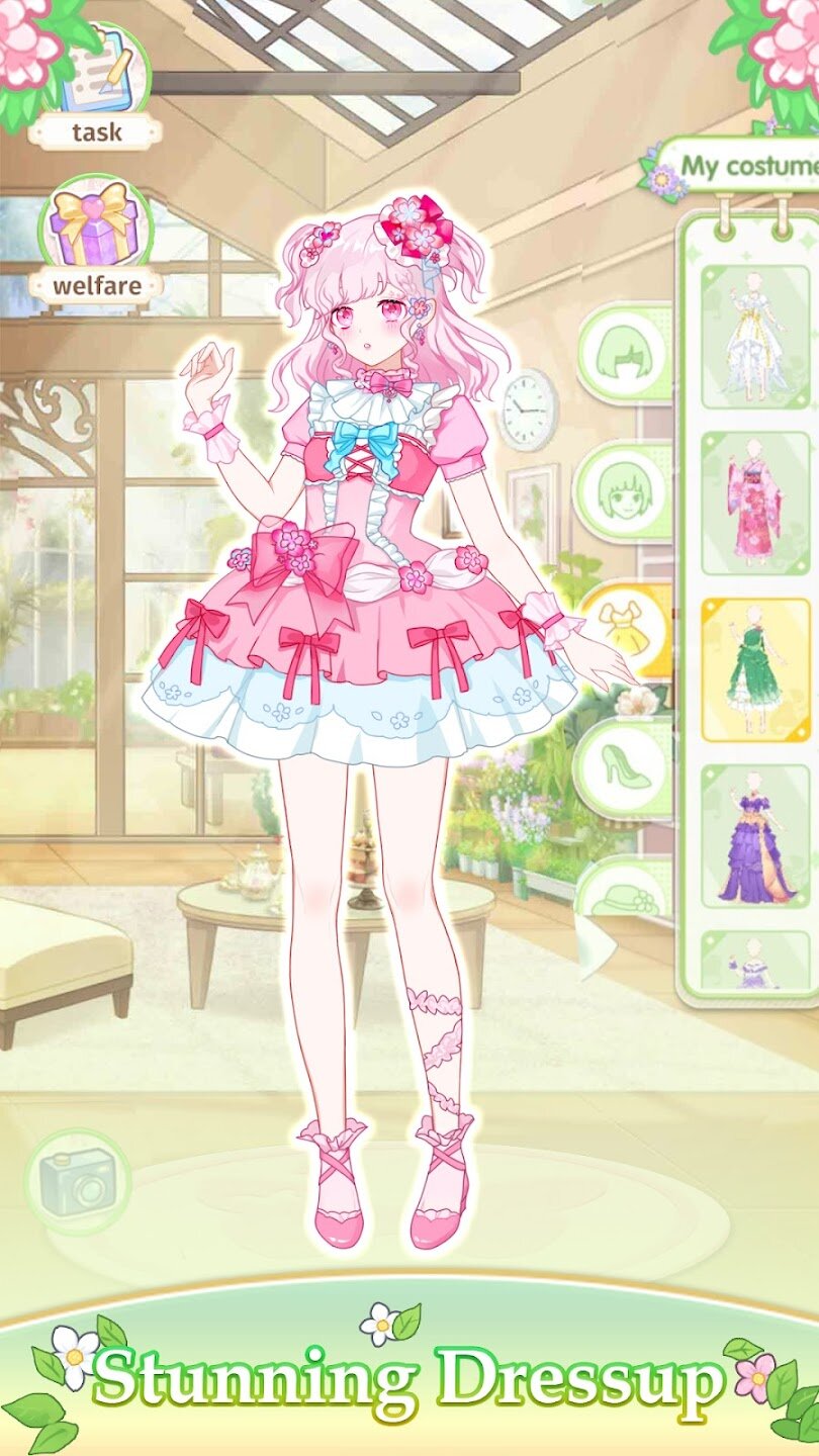 Vlinder Garden Dress Princess позволяет вам испытать радость от создания красивых кукол чиби, одновременно управляя собственным волшебным цветочным садом. Сажайте редкие цветы, поливайте их ежедневно и собирайте очаровательные цветы, которые можно превратить в эксклюзивные модные предметы. Игра идеально сочетает в себе симулятор фермерства и творческий игровой процесс с одеванием, позволяя вам создавать уникальных аватаров в стиле аниме и одевать их в одежду и аксессуары ручной работы, которые отражают ваш личный стиль.