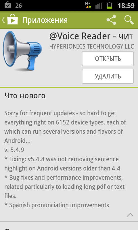 Озвучивание текста происходит с помощью голосовых модулей TTS, которые можно выбрать и скачать в маркете Google Play. Хочу особо отметить — качество произносимого текста зависит от конкретного движка TTS.