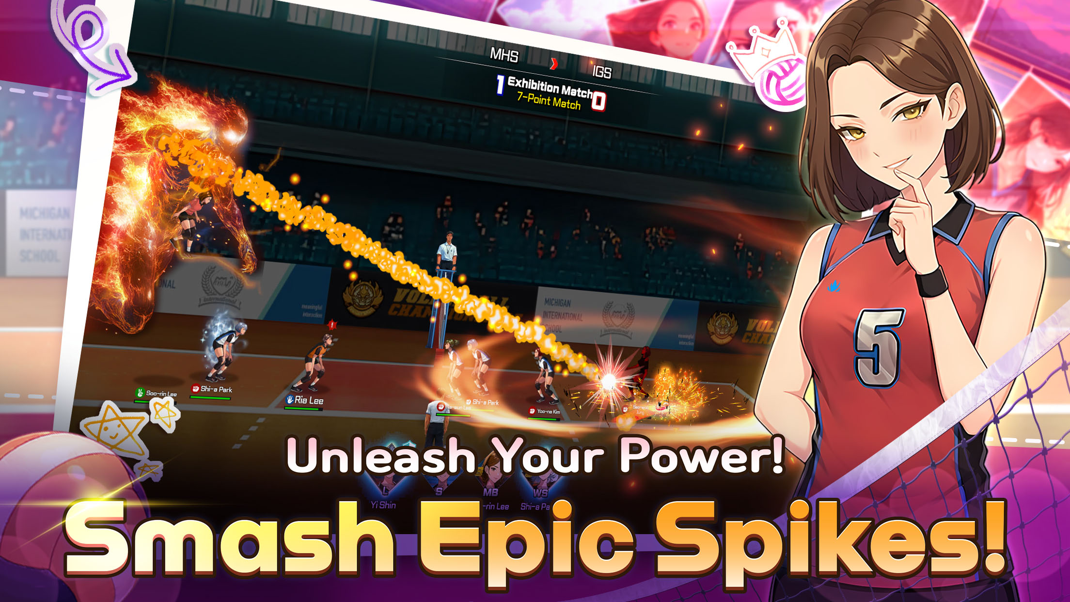 Volley Girls: High School Story — это динамичная спортивная игра в волейбол 4 на 4 с элементами RPG и управления командой. Игроки берут на себя полный контроль над женской волейбольной командой, ведя ее от школьных спортивных залов до национальных чемпионатов. Игра отличается отзывчивым управлением кнопками для подач, пасов и ударов, динамичным комментарием в реальном времени и богатым сюжетным режимом, следующим за путешествием первокурсницы в этом виде спорта.