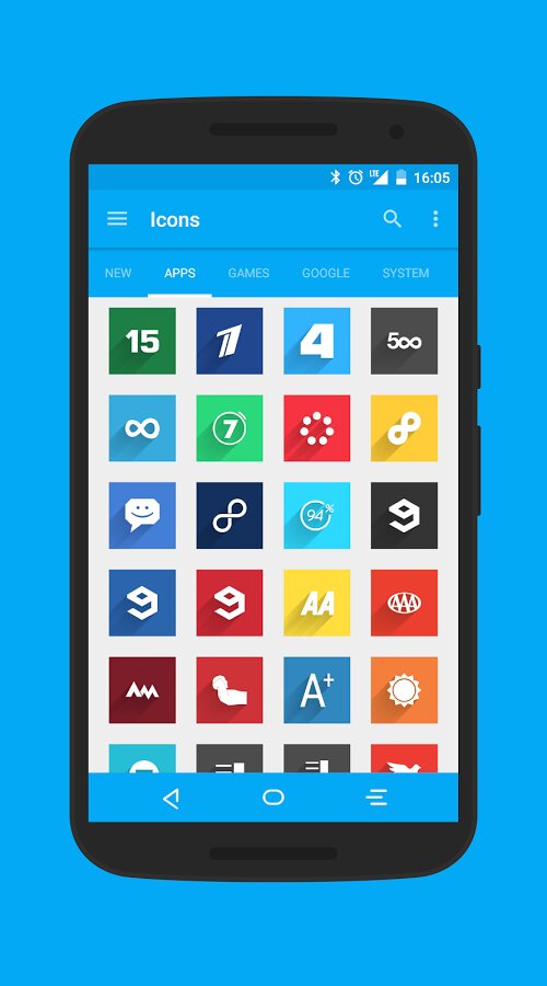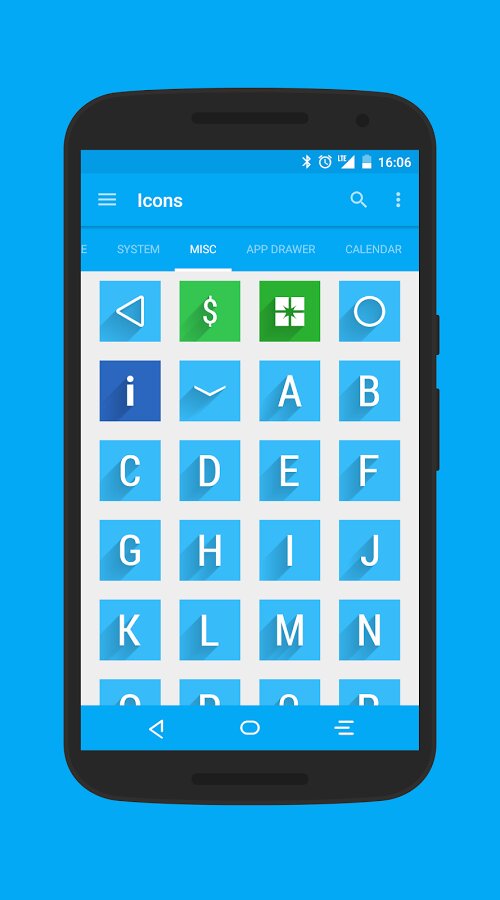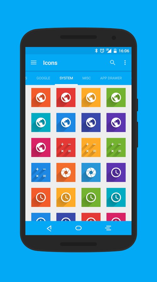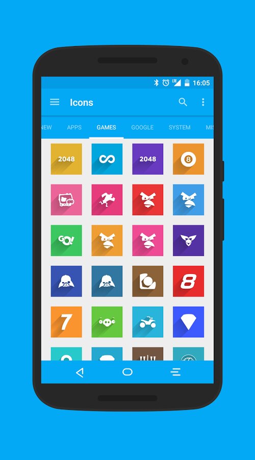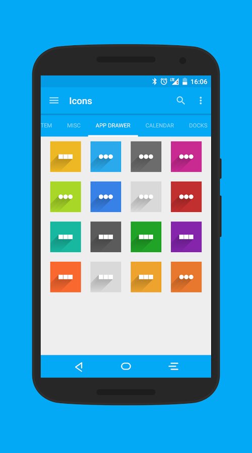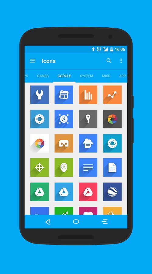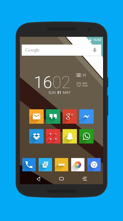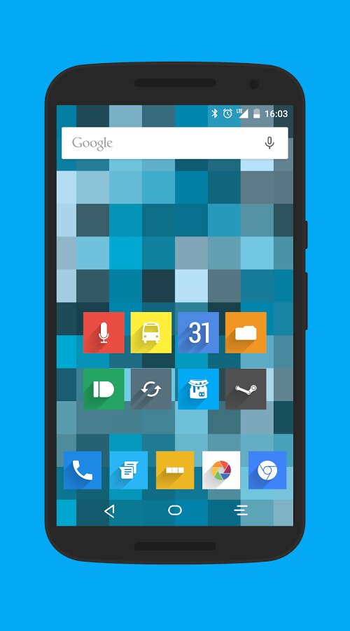 Voxel — квадратный, минималистичный иконпак с длинными тенями. Большое количество разноцветных иконок. Если есть недостающие иконки иконпак «кладет» под стандартную иконку приложения яркий квадрат.