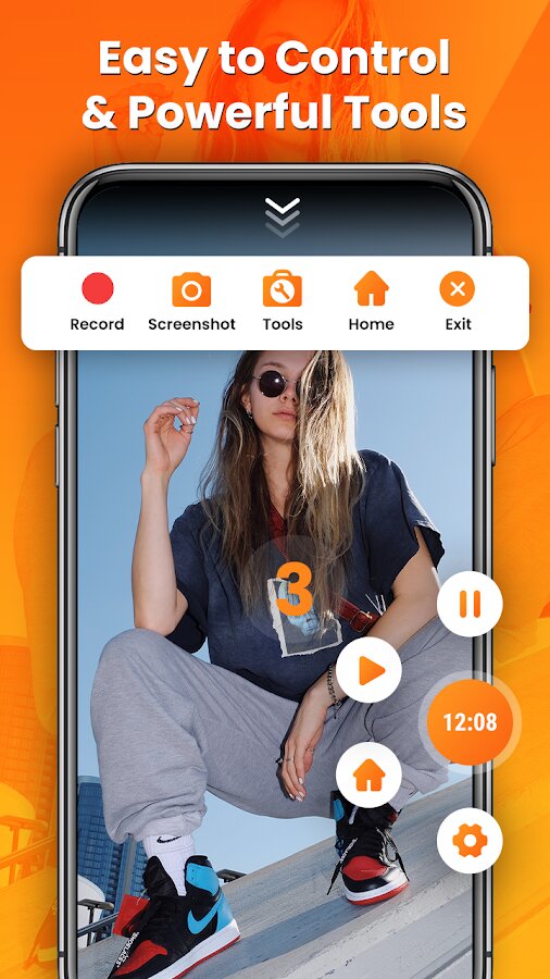 - Управляйте записью экрана через плавающее окно или панель уведомлений