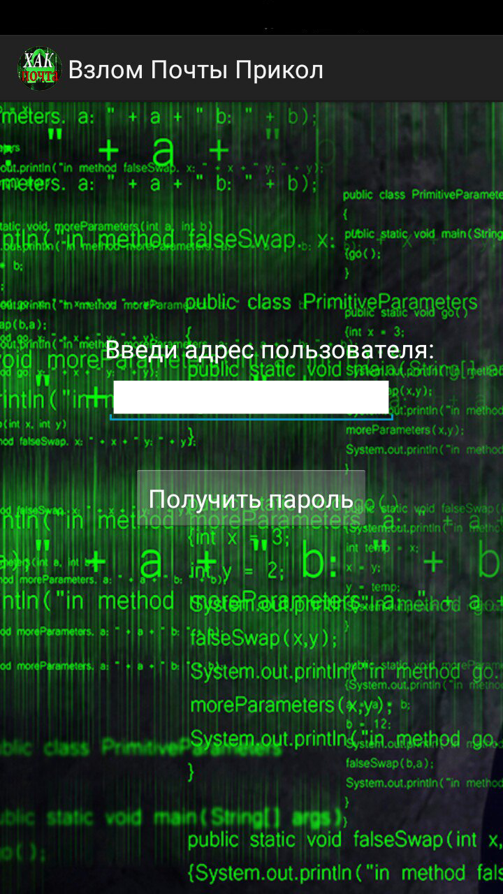 Это приложение симулирует взлом адреса аккаунта электронной почты и получения доступа к почте. Вы можете мастерски подшутить над своим одноклассником, другом или коллегой, изобразив взлом его почты прямо у него на глазах. Это настоящий кладезь приколов. Порази друзей и близких своими навыками хакера и взлома! Они действительно поверят вам и поразятся вашим способностям, если вы сделаете все быстро и правильно.
