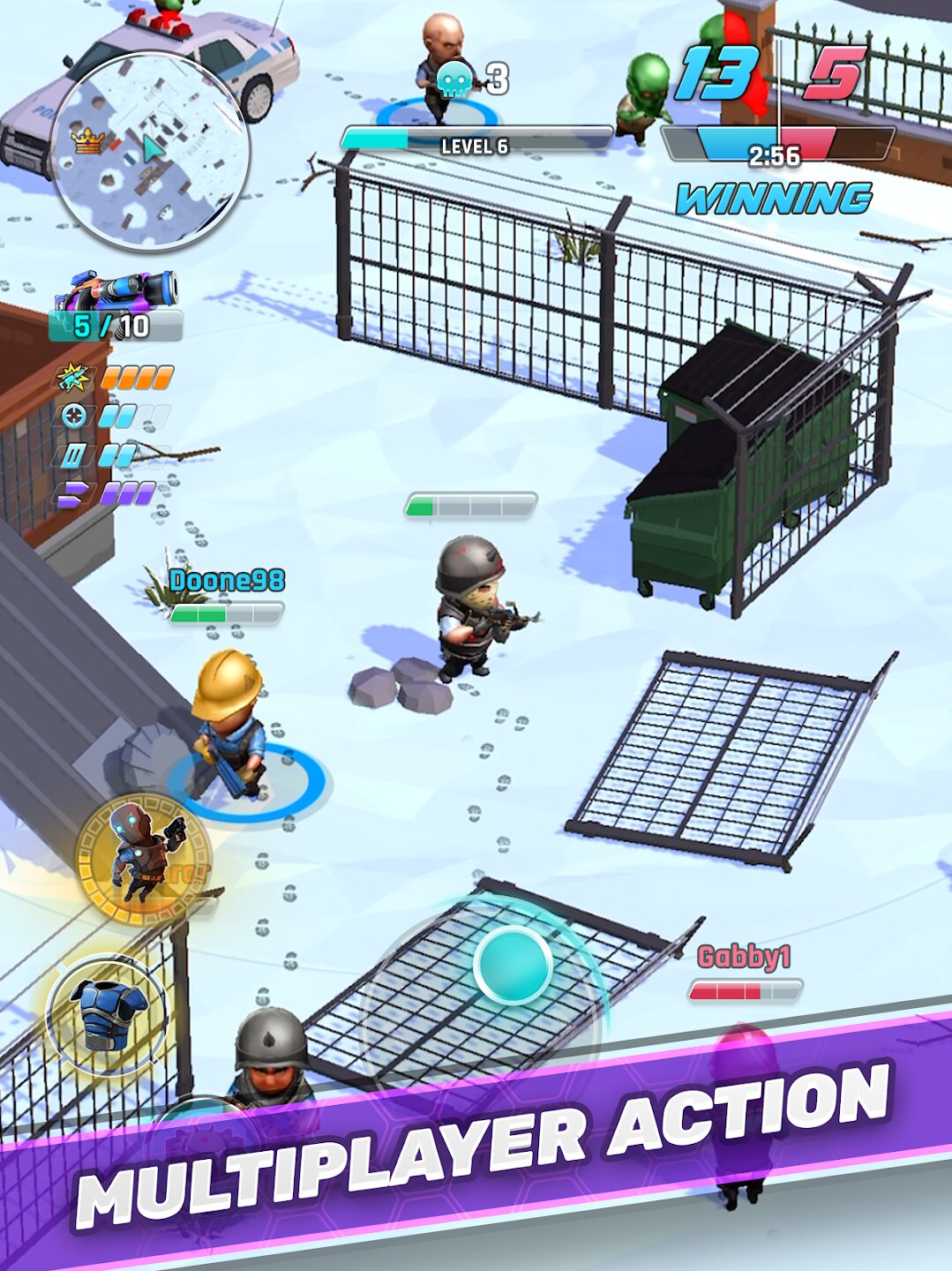 WarFriends Legends предлагает напряженные битвы на компактных аренах, где важны не только меткость, но и стратегическое использование способностей героев. Выберите своего бойца из двадцати уникальных персонажей, каждый из которых обладает особыми навыками и стилем ведения боя. Сражайтесь в восьми различных режимах – от классических дуэлей до кооперативных миссий против зомби. Быстрое развитие событий и интуитивное управление позволят полностью погрузиться в эпицентр сражения уже с первых секунд.
