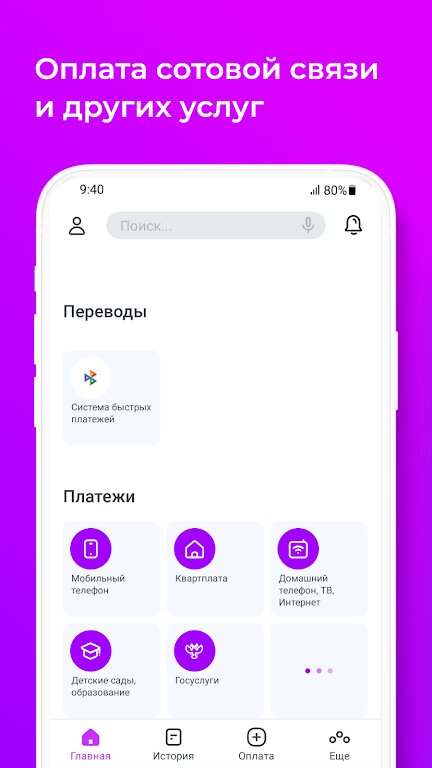 - быстрая оплата мобильной связи и интернета;
