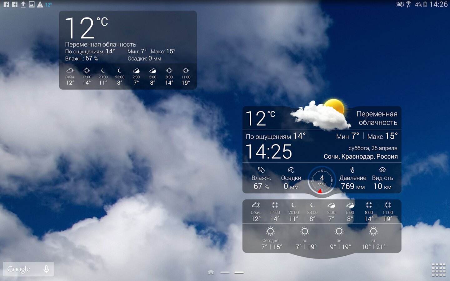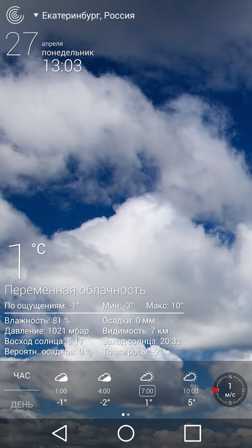 Минусы: Не работают все функции. Платная для того чтобы включить все функции. Не точно показывает погоду.