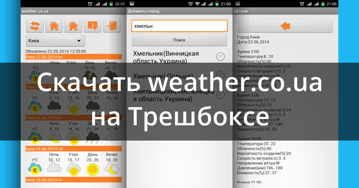 weather.co.ua — это просто программа для просмотра прогноза погоды, без всяких виджетов на пол-экрана, звуков, анимаций и прочей мишуры.