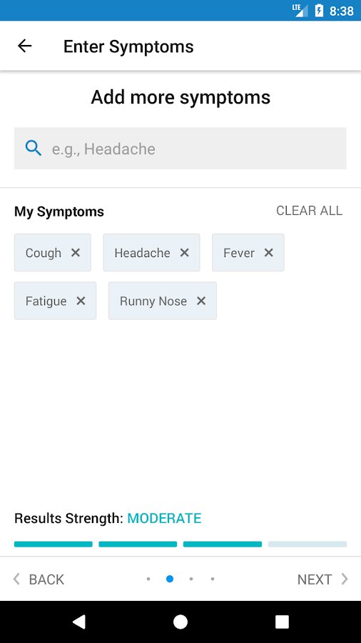 - Symptom Checker – в этом разделе указываются симптомы. Сделать это просто: достаточно дотронуться до той части тела, которая вас беспокоит, или же выбрать симптом из списка (предварительно указав в настройках пол и возраст).