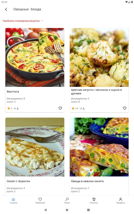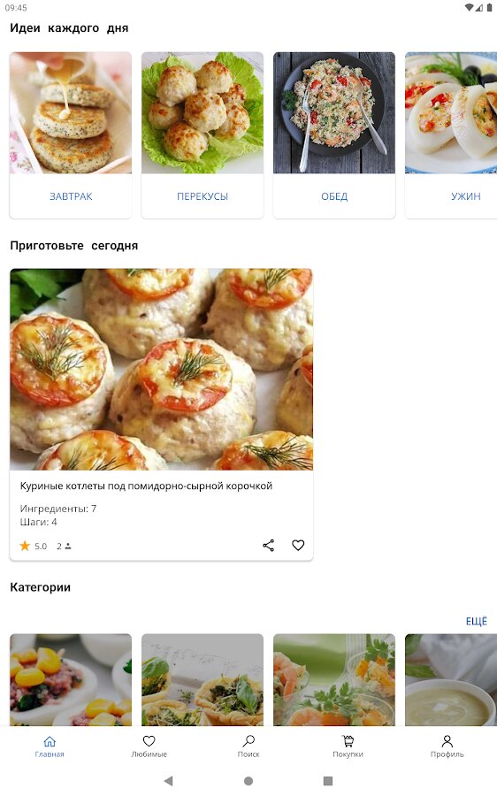- Все диетические рецепты разделены на категории для удобного использования. Также в приложении есть удобный поиск по названиям и по ингредиентам, который упрощает для Вас выбор рецептов.