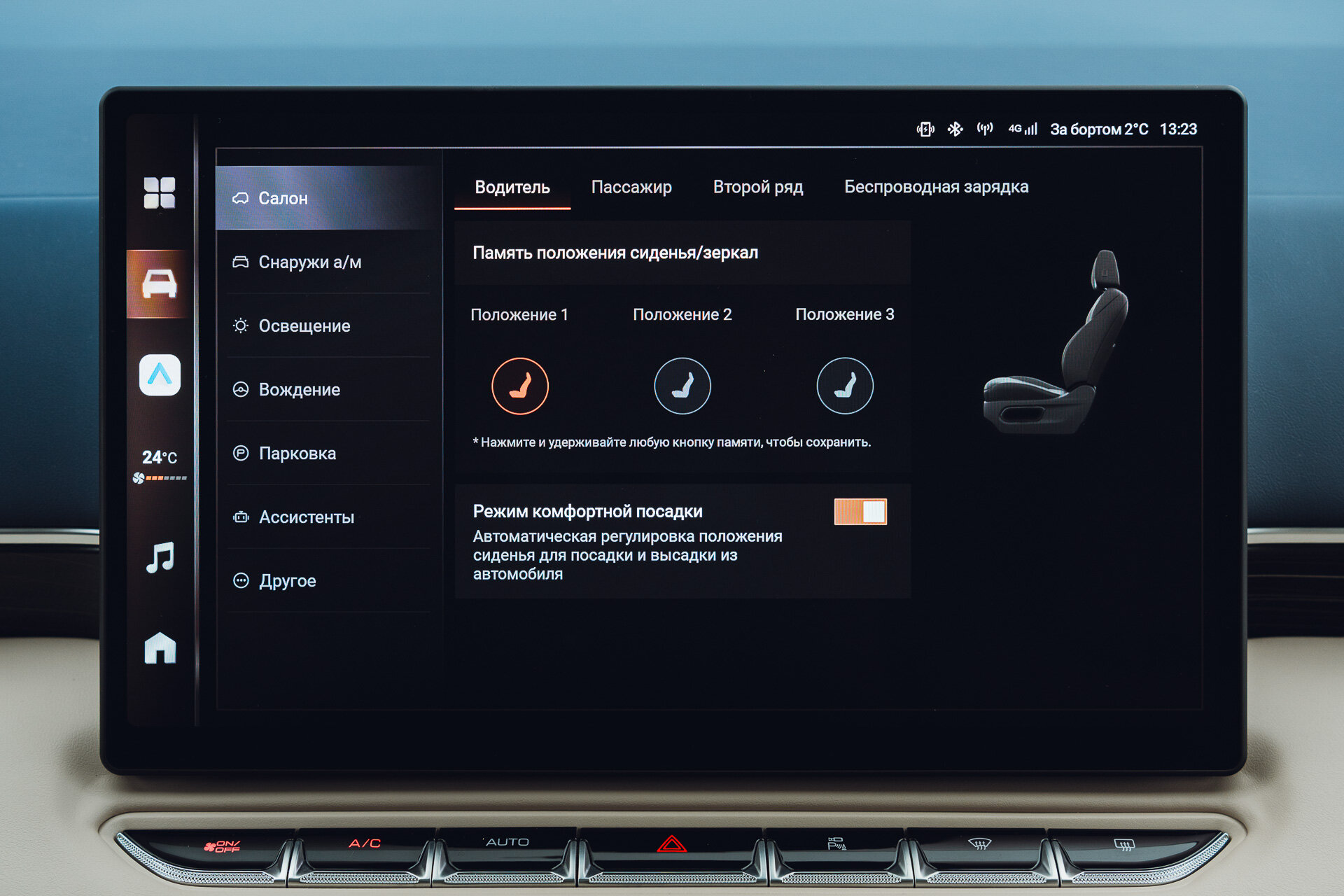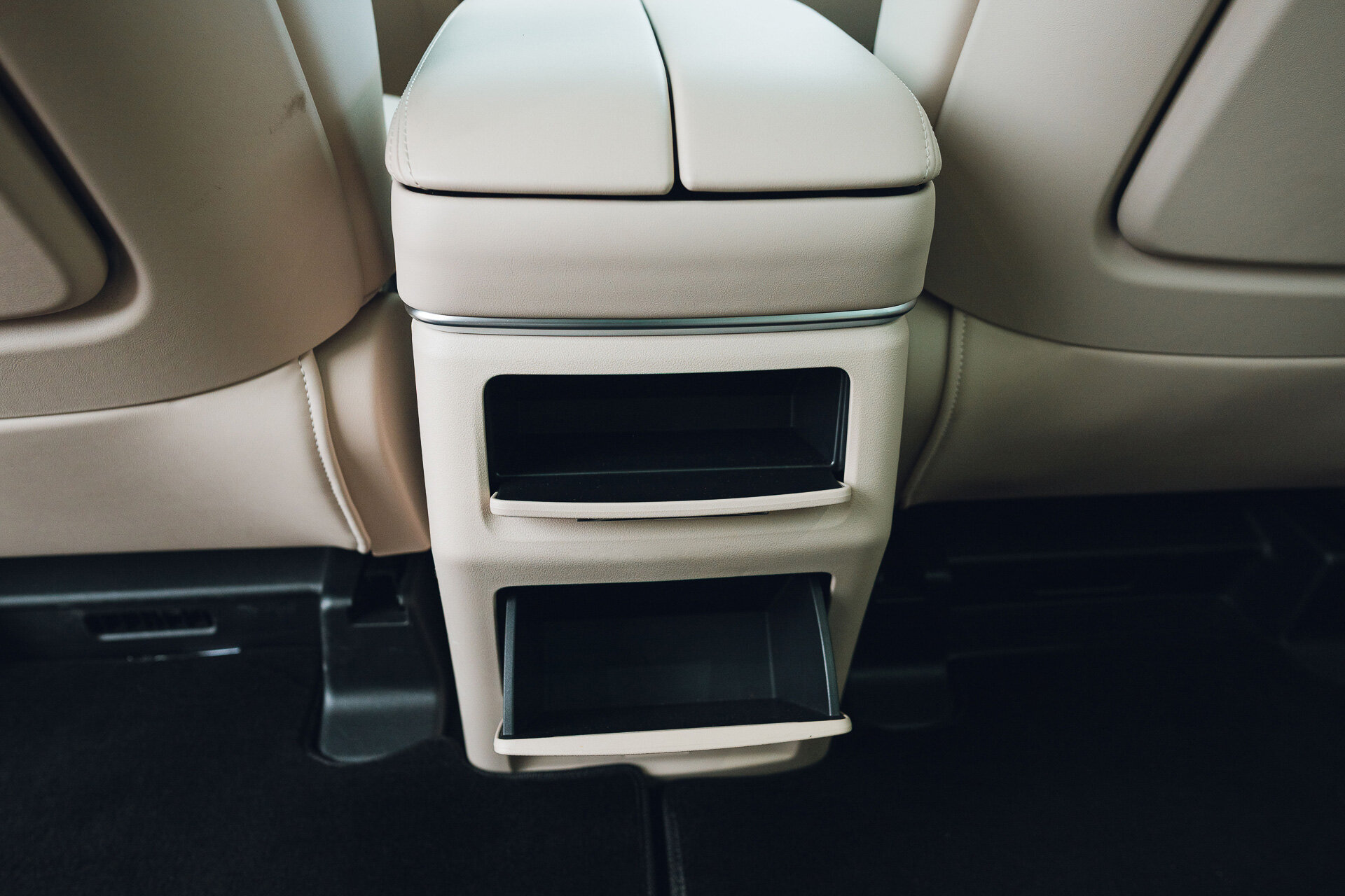 Итог, на втором ряду здорово, и я представляю, что все, кто будет знать о том, что у вас такая машина, захотят ехать только на втором ряду, и их можно понять! Важный нюанс: левитирующее положение кресла возможно только во время стоянки (режиме Р на селекторе КПП) — соображения безопасности.