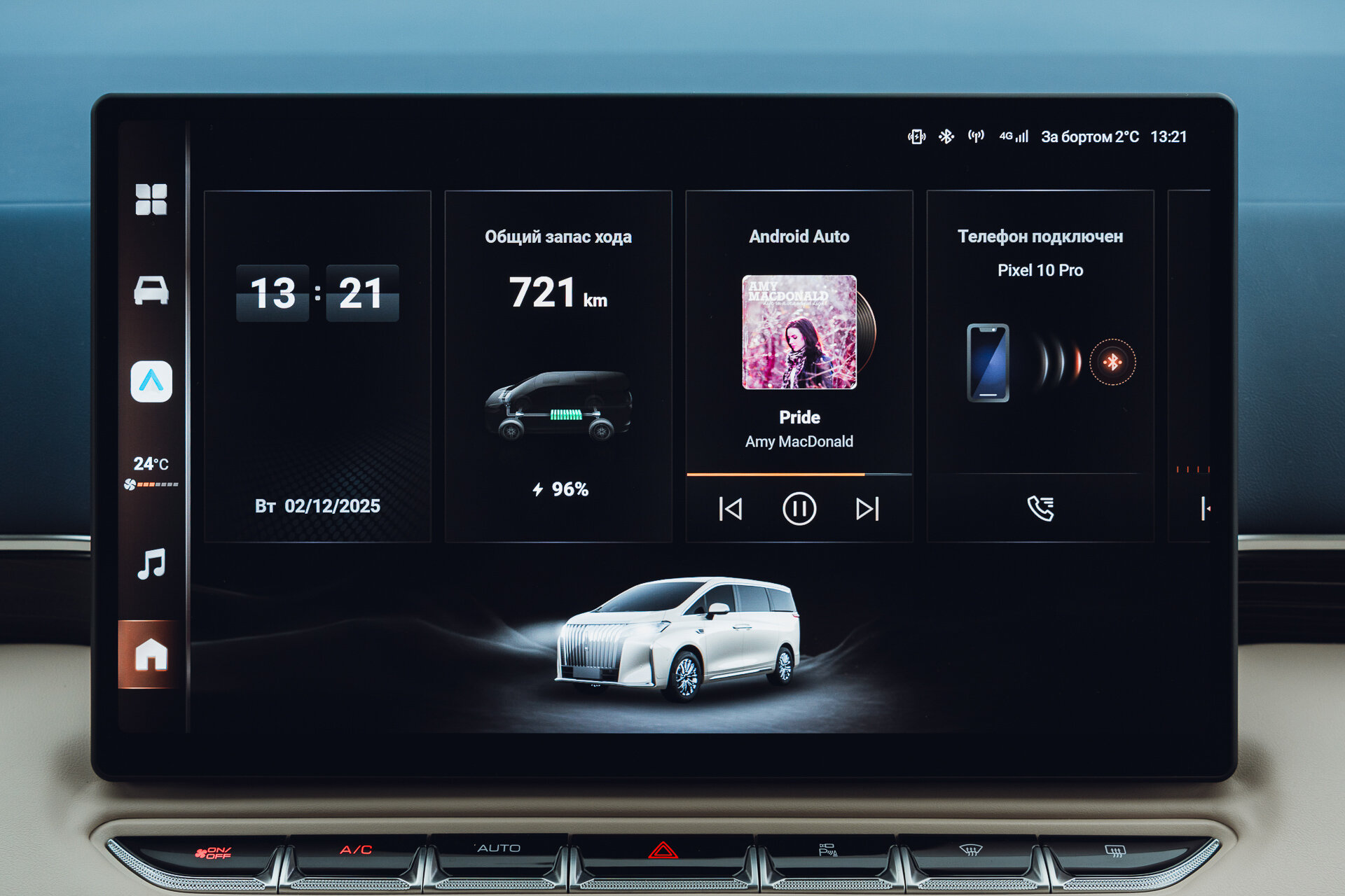 Что по техничке? Итак, трансмиссия DHT о двух передачах. Вторая для повышенных скоростей, первая для старта. Подвеска создаёт ощущение, что автомобиль плывёт, а не едет, что, бесспорно, плюс для подобного класса авто. Я, приноровившись к повадкам техники и с активированной ездой одной педалью, смог наловчиться ездить весьма плавно. Не могу не упомянуть и про акустический комфорт. На автомобиле «липучка», и колёс вообще не слышно.