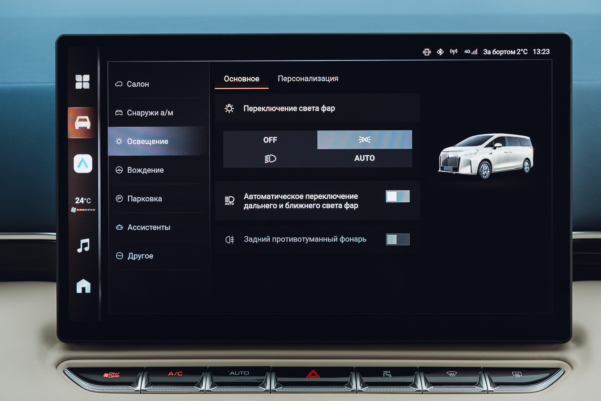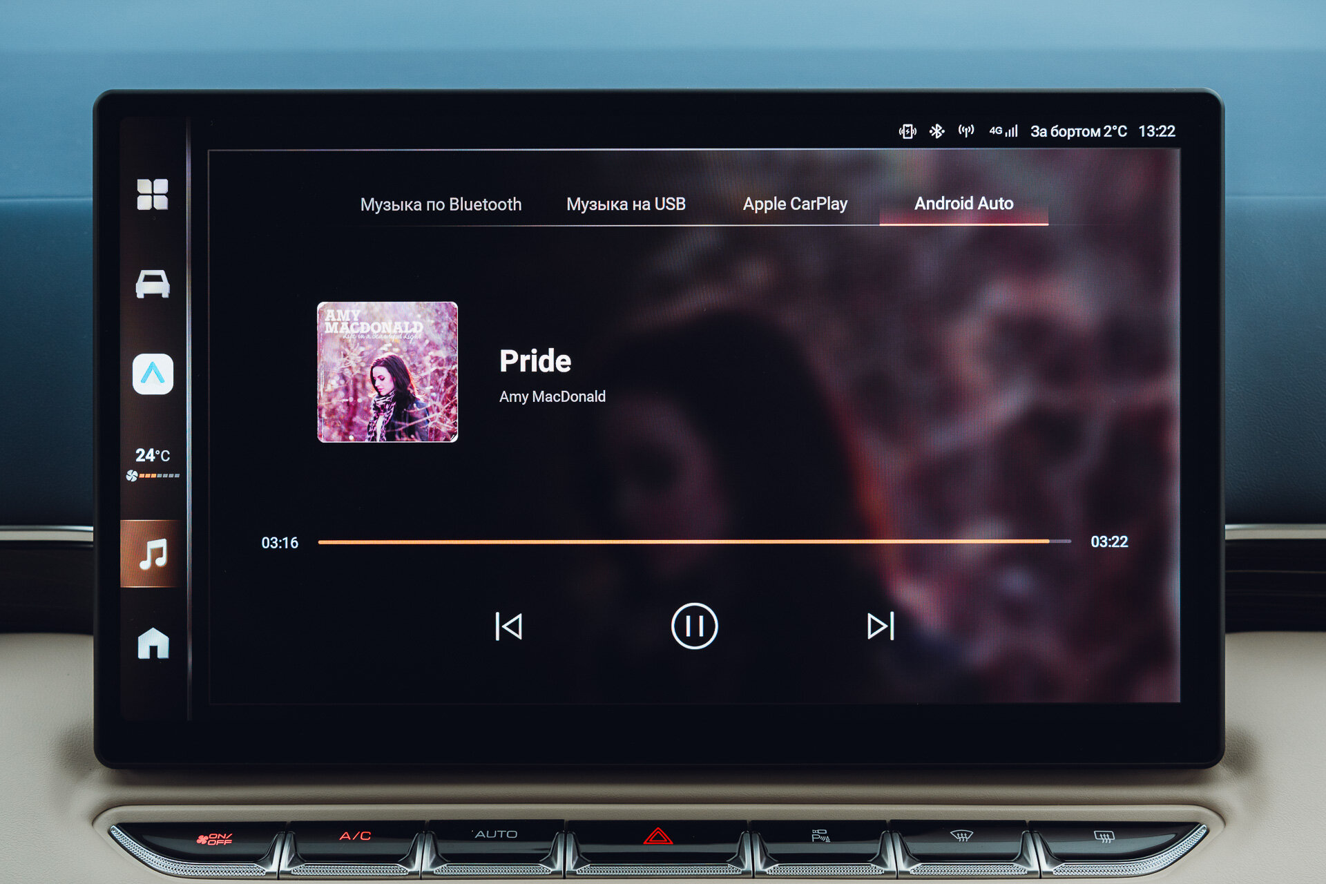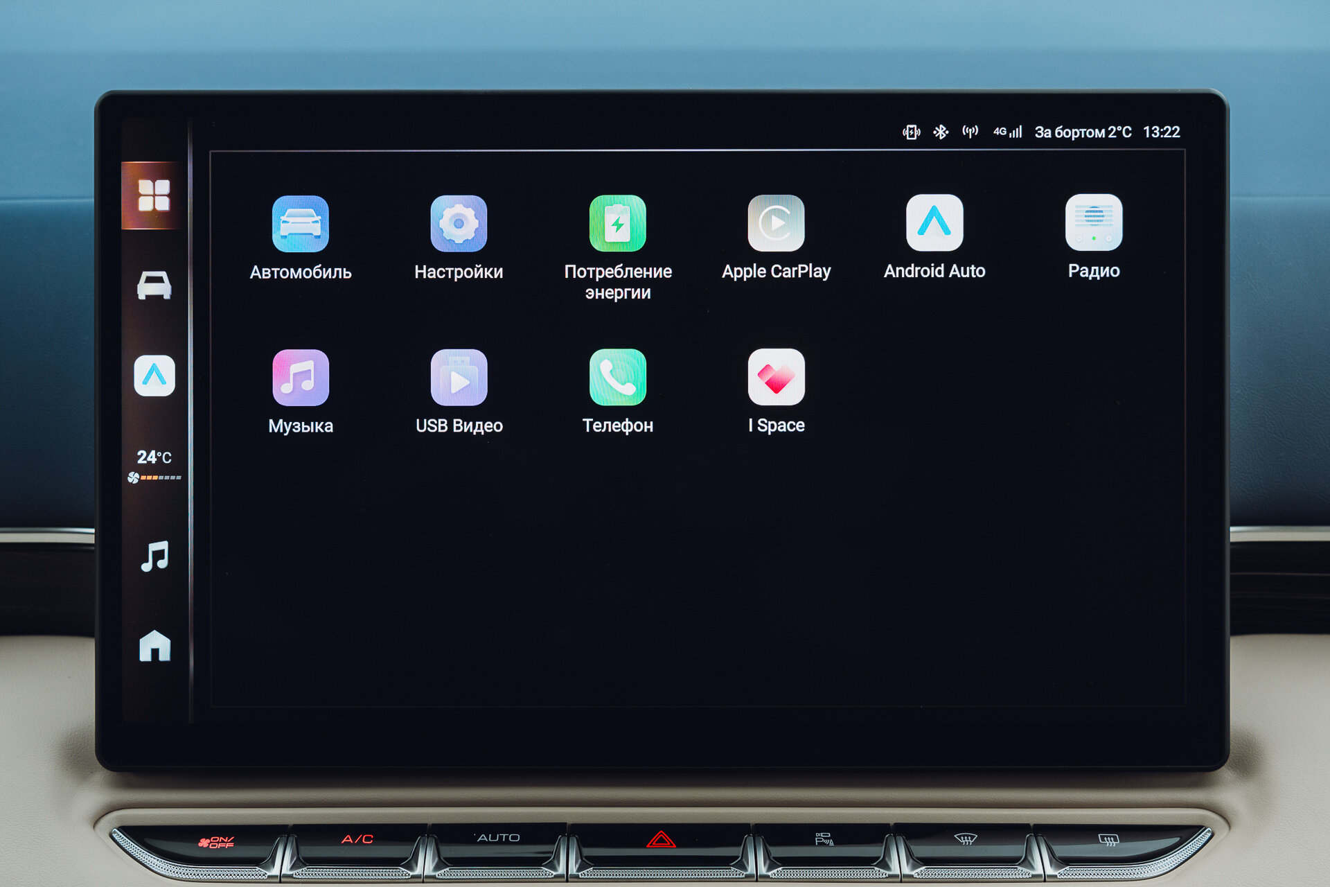 Как несложно догадаться, всё остальное здесь в меню. Работает шустро и здорово. Есть беспроводные CarPlay и Android Auto. Пожурю только за то, что до климата (а там же и подогревы/обдувы кресел) нужно добираться путём выхода из интерфейсов сопряжения со смартфоном. Увы, левый блок иконок не остаётся при подключении смартфонов.