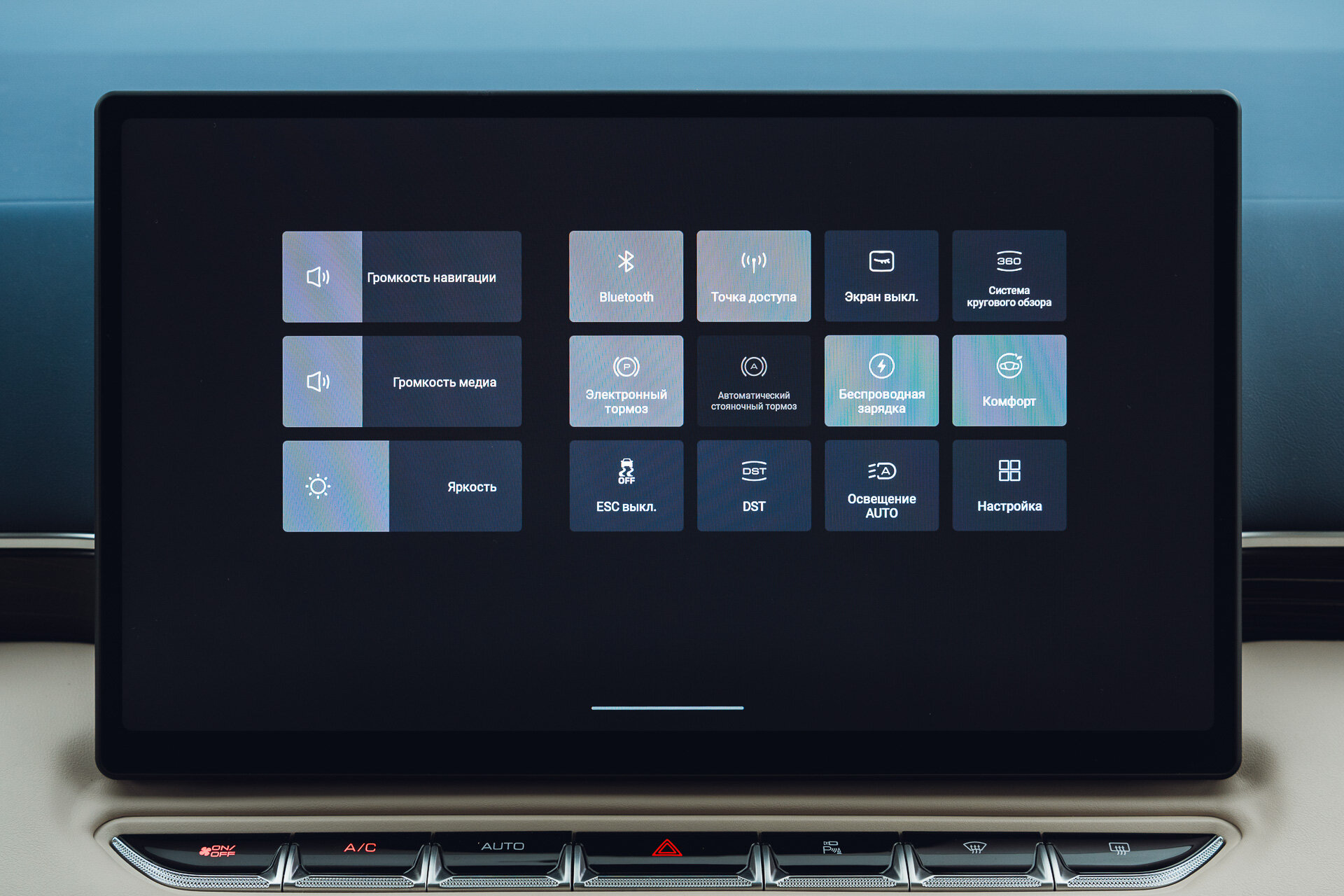 Сюда же добавлю просторный нижний ярус и привычный по другим авто GWM руль. Кстати, у Wey 80 ручка КПП — это правая ручка за рулём.
