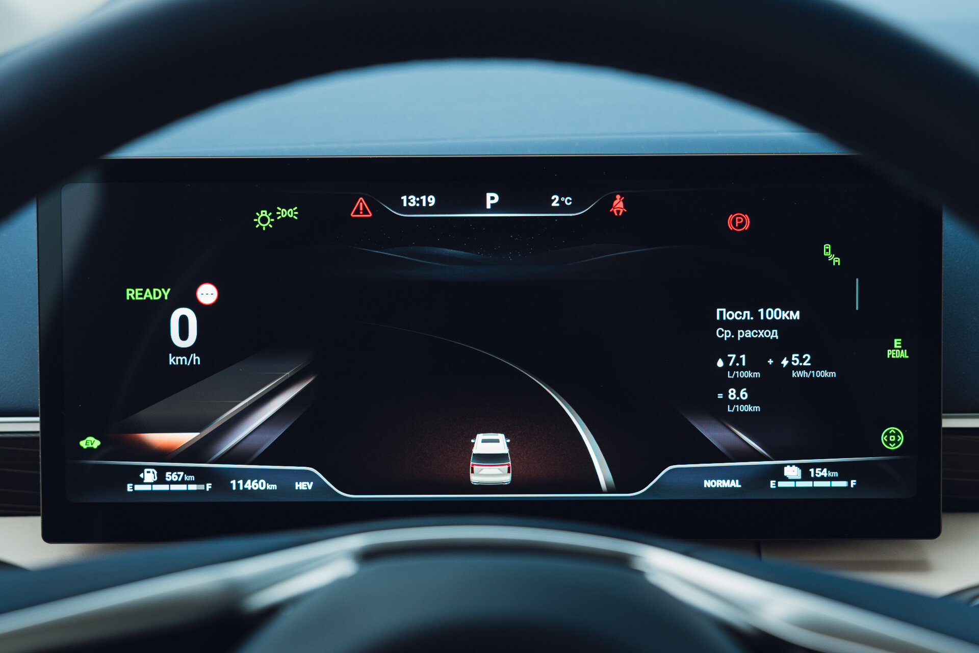 Всё техническое вооружение позволяет очень бодро передвигаться, даже если у вас много людей в салоне. Тяга ведь 762 Н·м! Здесь, конечно, электромотор крайне актуален, позволяя делать отличный подхват при старте или разгоне и обгоне. Отличный баланс!