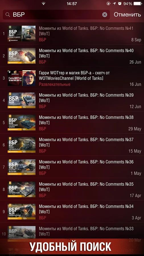 WGTV дает возможность смотреть видео со всех проектов Wargaming (World of Tanks, World of Warplanes, World of Warships, Blitz и др.) на своём смартфоне в любое время.