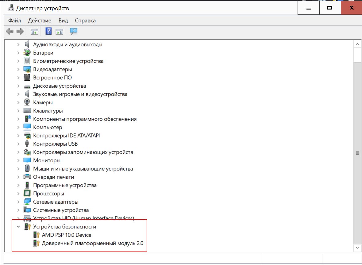 Способ 1. Запустите «Диспетчер устройств» и найдите в разделе «Устройства безопасности» строчку с названием типа «Доверенный платформенный модуль 2.0». Если нашли, значит у вас есть криптомодуль.