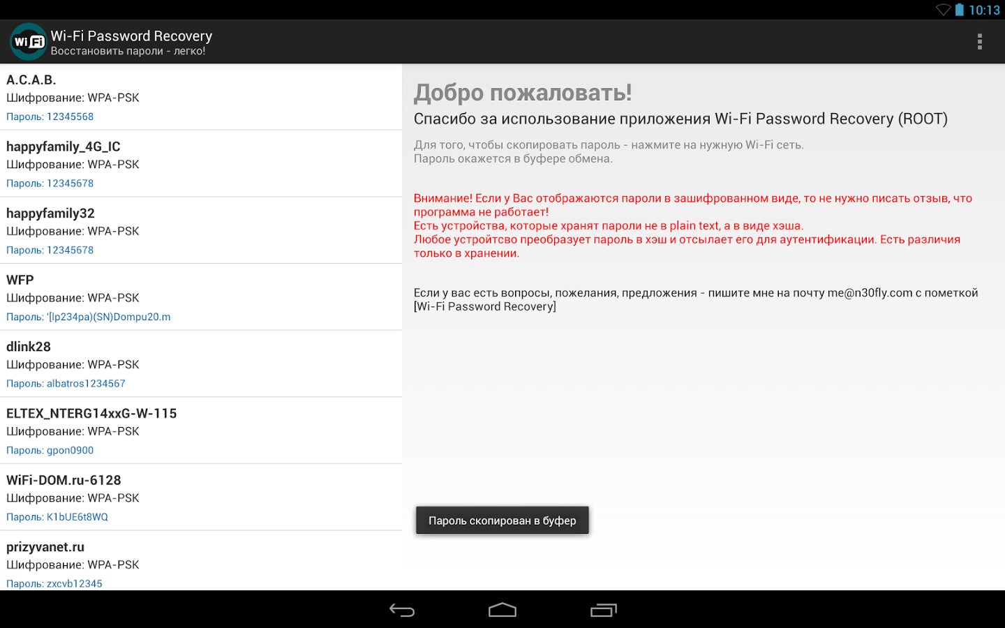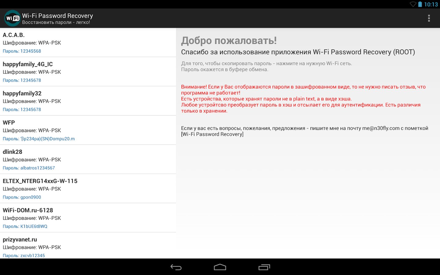 К сожалению или к счастью, приложение не взламывает пароли на точках доступа, а лишь считывает их из внутренней памяти устройства.