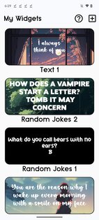 Приложение также имеет богатую встроенную библиотеку контента, которая пробудит вашу креативность. Получите доступ к тщательно подобранной коллекции остроумных цитат и забавных анекдотов, чтобы мгновенно наполнить свои дизайны интересным текстом. Это упрощает создание восхитительных и развлекательных виджетов, которыми можно поделиться с друзьями и семьей, скрашивая день каждого прямо с главного экрана.