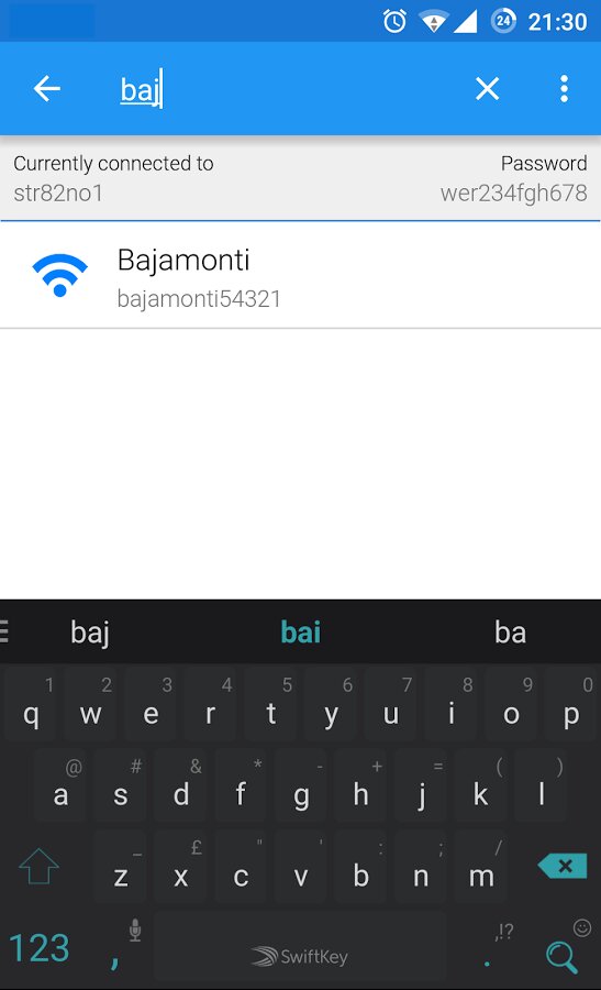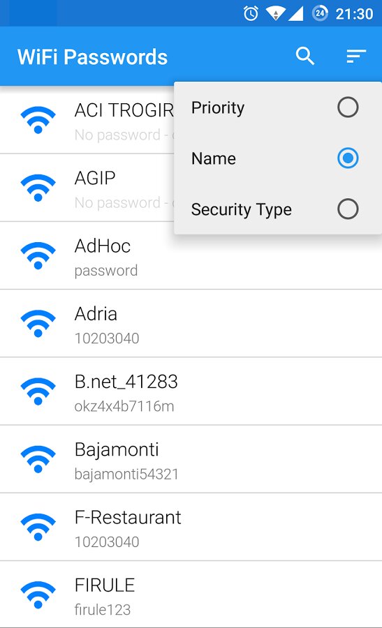 Концепция приложения WiFi Passwords очень проста — оно просто отображает пароли к сетям Wi-Fi без каких либо звездочек и скрывающих символов. В обычном функционале операционной системы Android невозможно посмотреть настоящий пароль от сети — он всегда будет скрытым. А программа WiFi Passwords может не только показать его, но и восстановить при надобности. Для последней функции требуется root-доступ. Скопировать пароль можно простым нажатием на сеть.