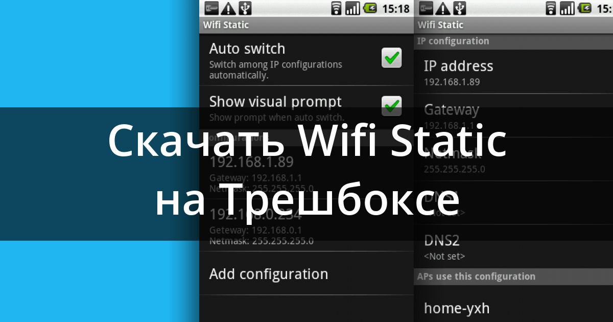 Конечно, вы можете установить статический IP штатными средствами (настройки — беспроводные сети — настройка Wi-Fi — хард кнопка «Меню» — Дополнительно), но штатно Андроид позволяет запомнить только ОДНУ конфигурацию. Это приложение устранет этот недостаток.