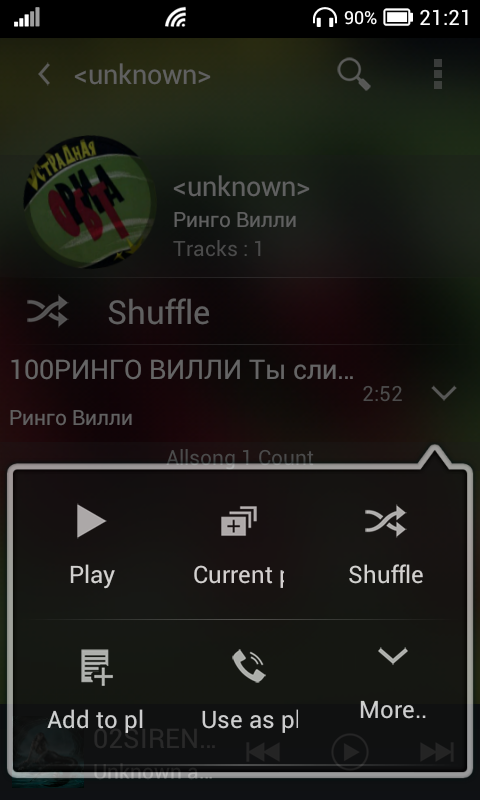 Плеер с очень интересными и своеобразными интерфейсом и функционалом. Допустим вы выбрали в папке (альбоме) песню и она заиграла. Тапаете по кружку, появились ещё кружки (маленькие). Тапаете по одному из них, заиграла другая песня.Имеются различные настройки, эквалайзер, но руяза нет. Поддерживает многие аудиоформаты.