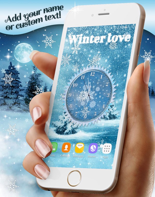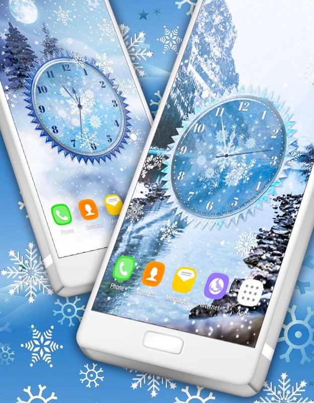 Winter Snow Clock Wallpaper — это приложение, которое изменяет фон телефона с красивыми изображениями зимнего сезона и аналоговыми часами из льда, которые имеют эффекты параллакса (3D) и магический прикосновение (красивые анимации при касании экрана). Вы также можете добавить один из двух оригинальных часов на главный экран! Также на вашем экране падают красивые и морозные снежинки.