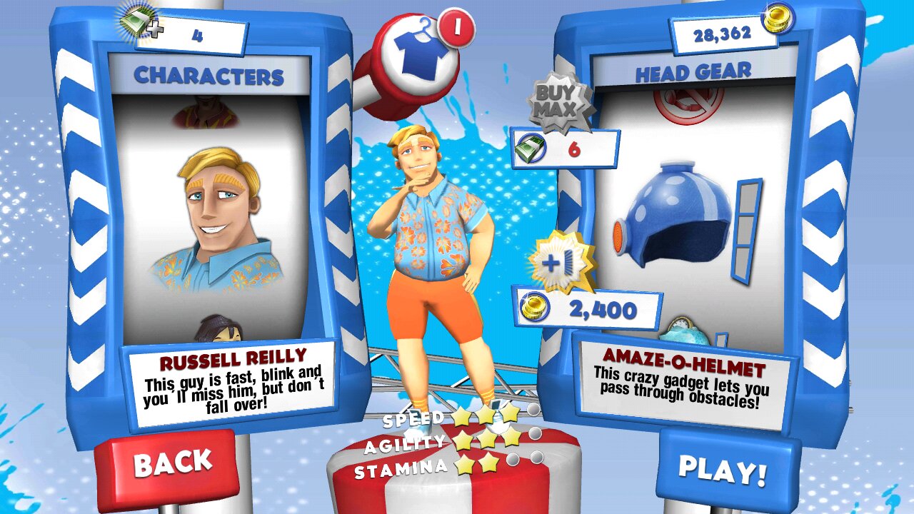В игре присутствуют различные персонажи с разными характеристиками. Также присутствуют шлемы, которые можно использовать раз за раунд и он пропадает, каждый дает свой бонус, один при активации сразу дает прыжок огромный персонажа, другой ускорение.