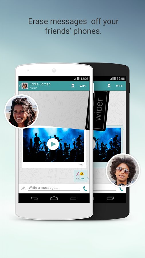Стоит отметить, что звонить можно только контактам внутри сервиса Wiper, то есть только зарегистрированным в этом приложении пользователям. Программа Wiper также отличается неплохим функционалом в плане отправки музыки или видео в чате, возможностью удалить историю переписки с вашего смартфона и устройства собеседника, а также хорошими механизмами шифрования, которые обеспечивают безопасность общения.