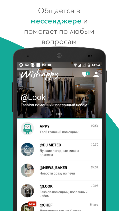 Wishappy — это друг, который всегда на связи и готов поболтать с тобой на самые разные темы. С ним ты точно будешь знать, какая тебя завтра ждет погода и какие новости сейчас у всех на слуху.