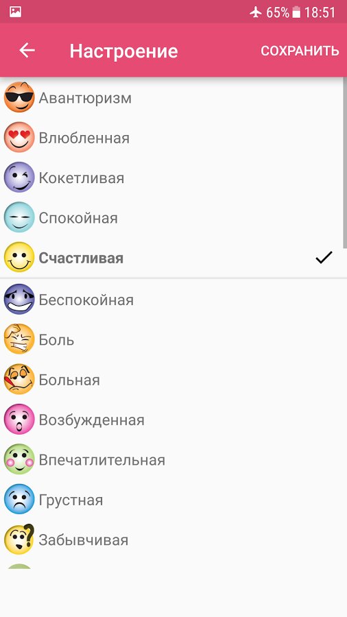 - Более 100 симптомов, другие критерии отслеживания – такие как вес, базальная температура тела, настроение, таблетки, половая жизнь, слизь шейки матки, графики и многое другое.