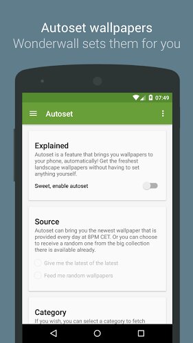 Wonderwall — данное приложение создано для любителей не просто новых, но и качественных обоев. Имеет оно и несколько специфических особенностей. Во-первых, здесь есть только фотографии природы во всех её проявлениях. Во-вторых, все фотографии адаптированы под экран смартфона, то есть имеют вертикальную ориентацию.