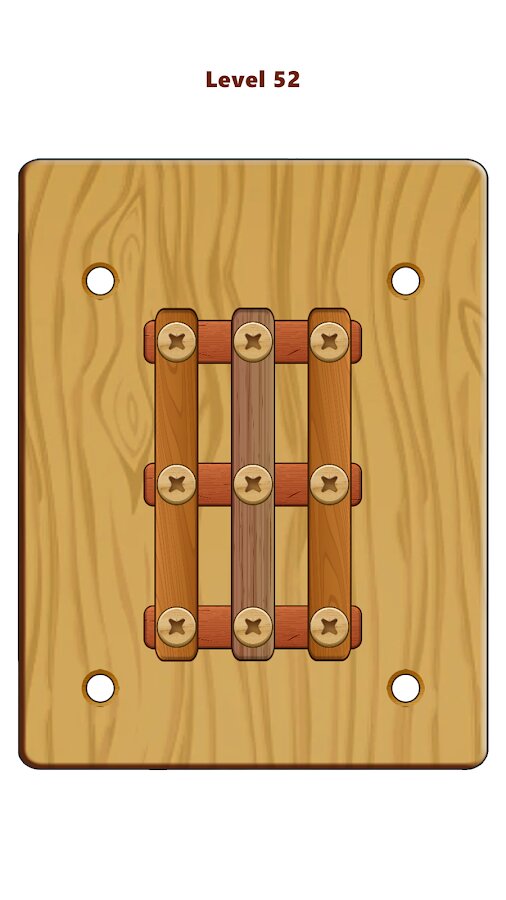 - Персонализация: Выбирайте из более чем 10 различных скинов для деревянных гаек и болтов, чтобы настроить внешний вид элементов головоломки.