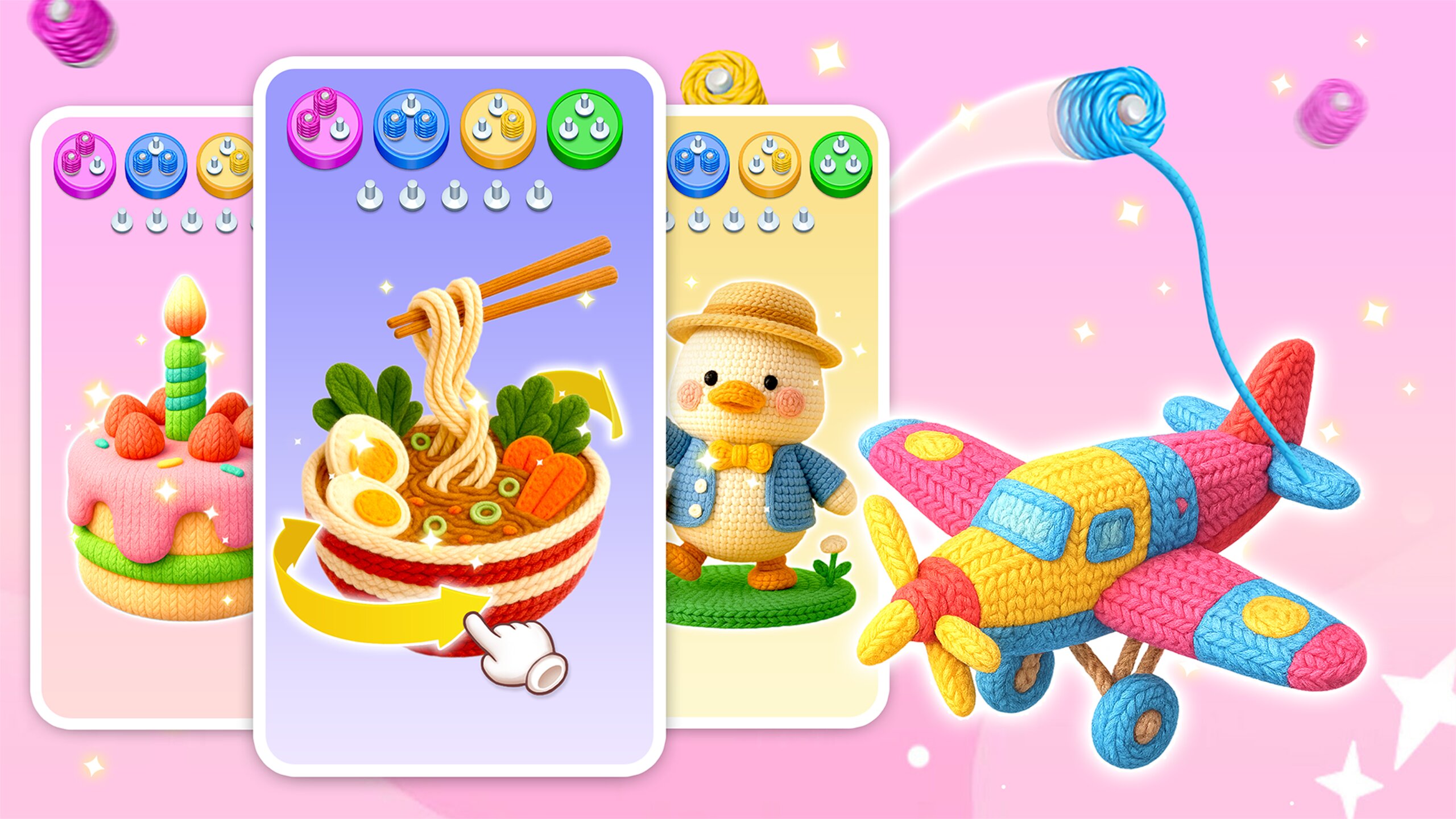 Wool Puzzle 3D — это расслабляющая 3D-головоломка, посвященная пряже и цветам.