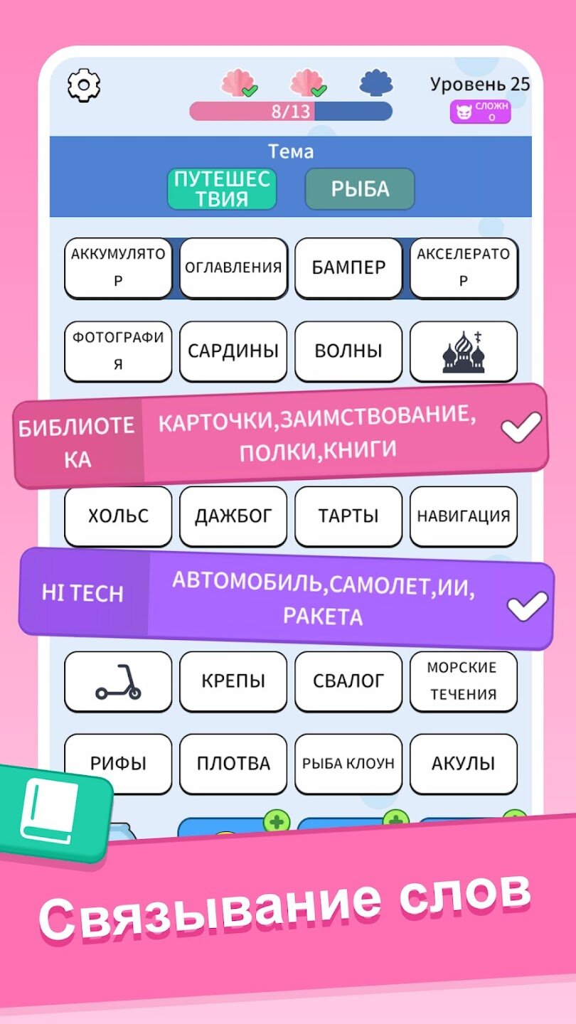 Смена Слов: Word Associations — увлекательная игра-головоломка, в которой игрокам предлагается сортировать и связывать слова по тематическим ассоциациям. Сочетая в себе механику популярных жанров word jam и word connect, эта игра проверяет как ваш словарный запас, так и способность быстро мыслить. Каждый уровень представляет собой увлекательную головоломку, в которой вам необходимо определить связи между словами и правильно сгруппировать их, чтобы пройти все более сложные испытания.