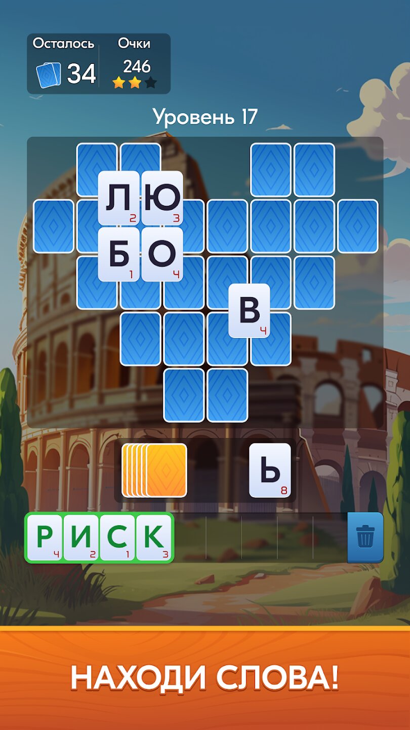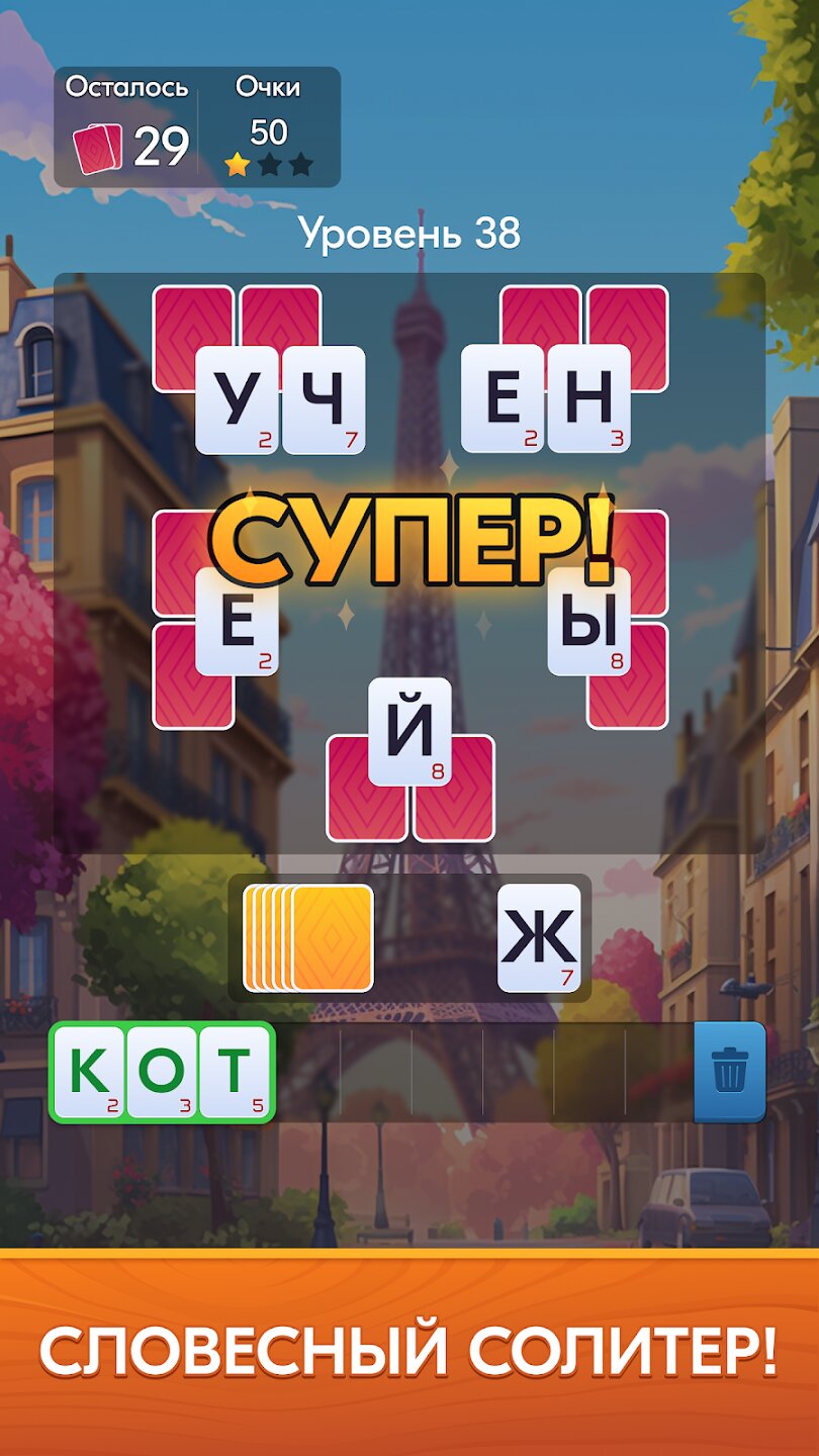 - Инновационное сочетание механики пасьянса и игрового процесса построения слов.