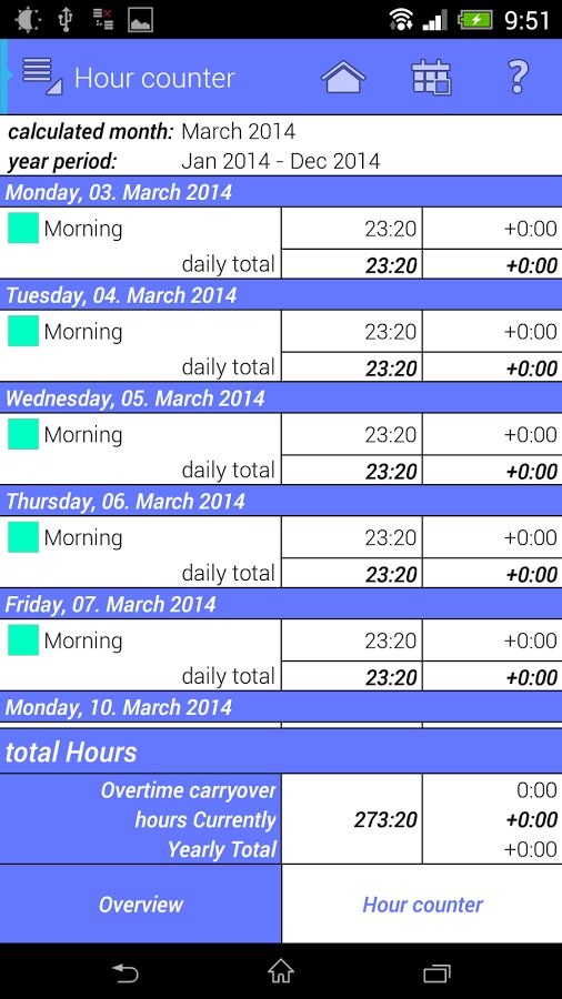 Work Calendar поможет вам вести график работы в ясной, простой и удобной форме.