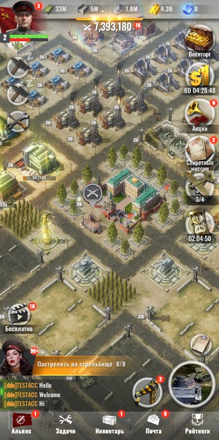 - Объединитесь с командующими со всего мира. Мир объят пламенем войны, и ваша миссия — изменить историю. Примкните к мировому альянсу, чтобы выиграть войну совместными усилиями! Занимайте немецкие, советские и европейские города, представляющие стратегическое значение!